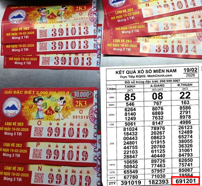Chiều 19-2, Công ty TNHH Xổ số Kiến thiết Bình Thuận mở thưởng với giải đặc biệt mang dãy số 691201. Theo xác nhận từ đại lý, các vé trúng thưởng được phát hành và tiêu thụ tại khu vực TP.HCM.