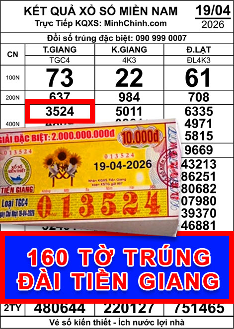 160 tờ trúng số theo kết quả xổ số miền Nam ngày 19 tháng 4