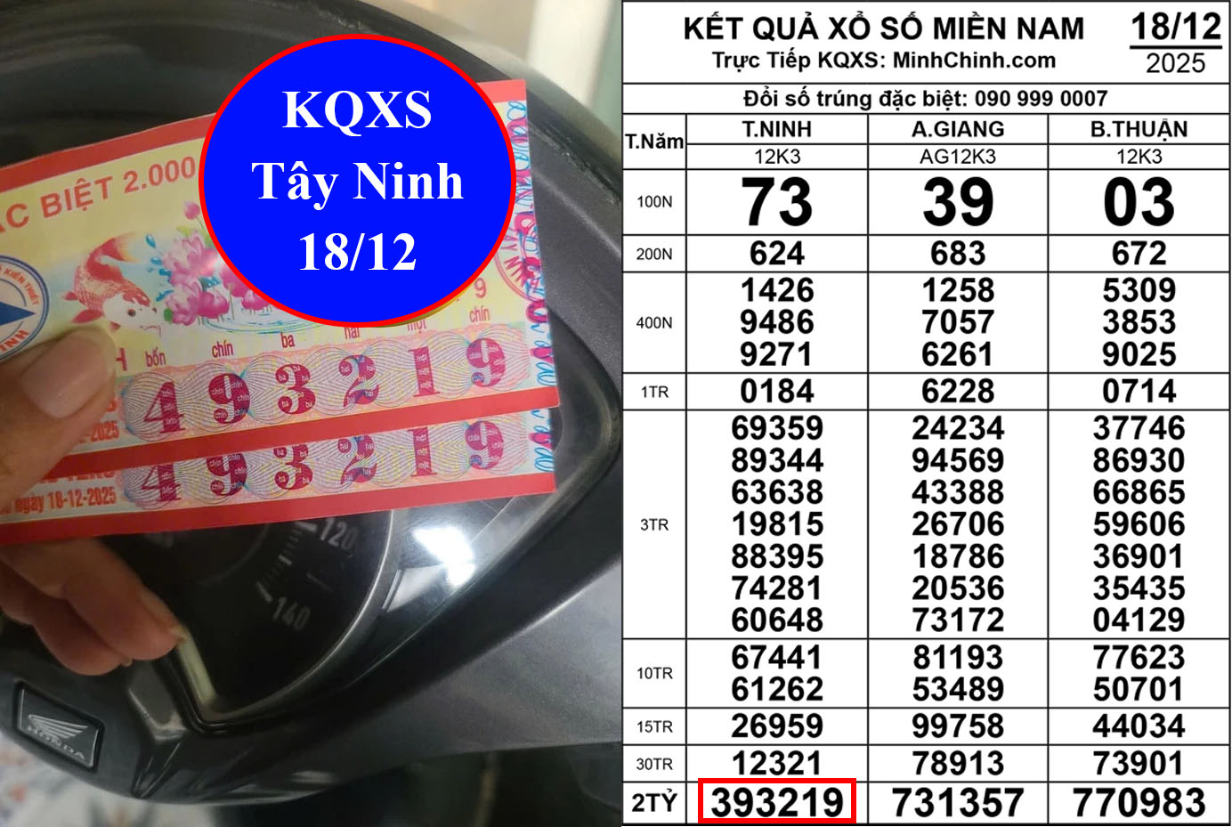 Từ tối 18/12 đến sáng 19/12, nhiều đại lý vé số tại TPHCM đã xác nhận đổi thưởng các vé trúng giải cao, trong đó nổi bật là giải độc đắc vé số Tây Ninh mở thưởng chiều 18/12. Tờ vé may mắn mang dãy số 393219 được xác định trúng tại TPHCM và đã được đổi thưởng tại một đại lý trên địa bàn.