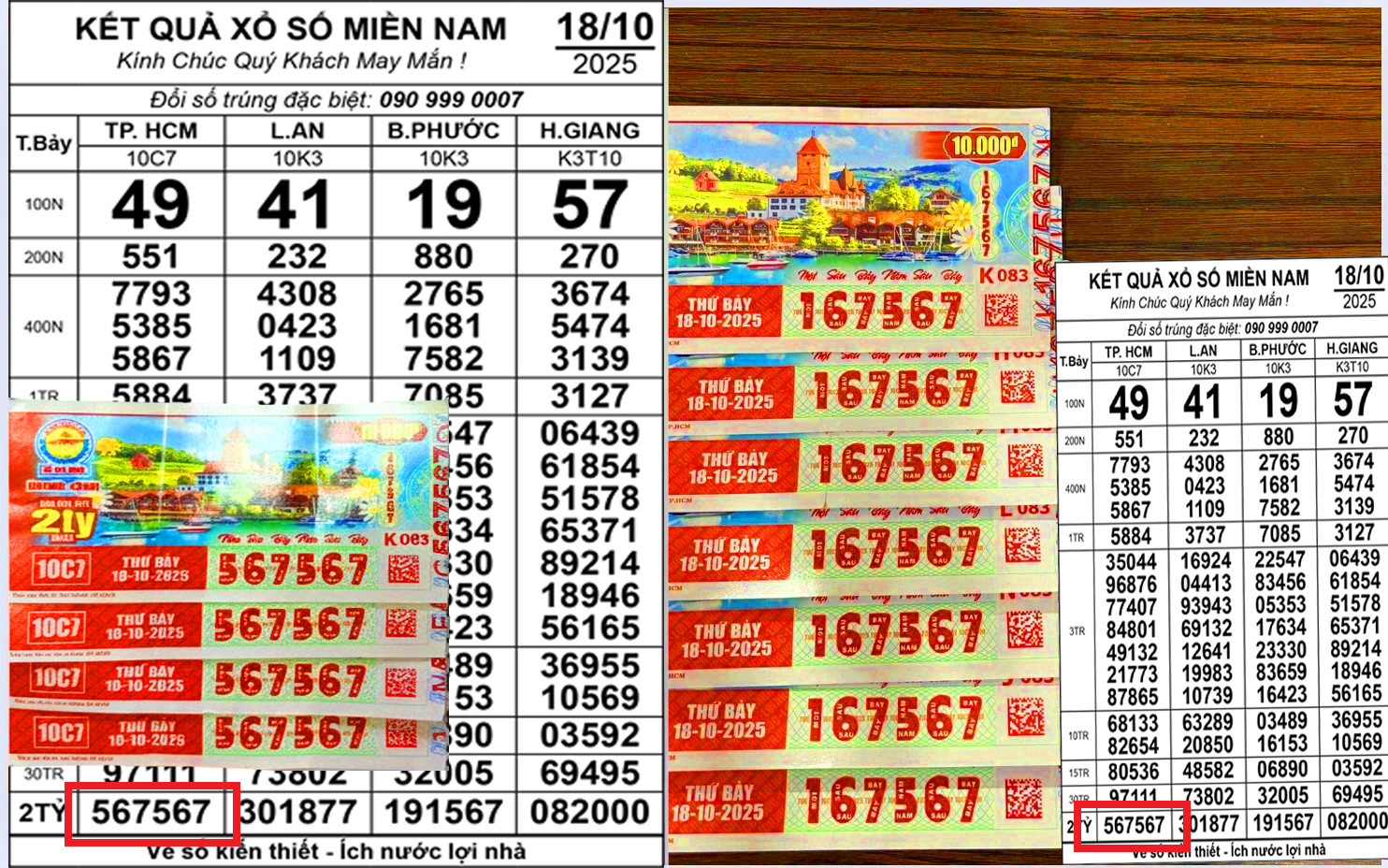 Trước đó không lâu, anh Khắc Duy, chủ đại lý vé số Khắc Duy tại Vĩnh Long (Bến Tre cũ), cũng xác nhận khách hàng của anh trúng 140 tờ vé số – trong đó có 14 tờ trúng độc đắc và 126 tờ trúng an ủi, thuộc đài Bình Phước quay cùng ngày 18/10.