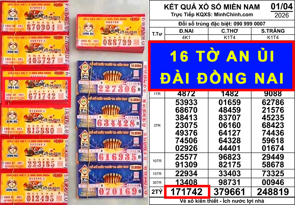 XSMN 1-4: 16 vé trúng 800 triệu đài Đồng Nai lộ diện