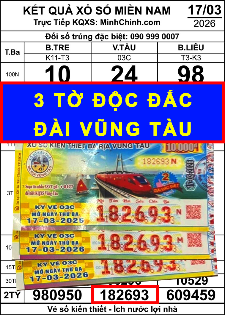 3 tờ vé trúng độc đắc của đài Vũng Tàu