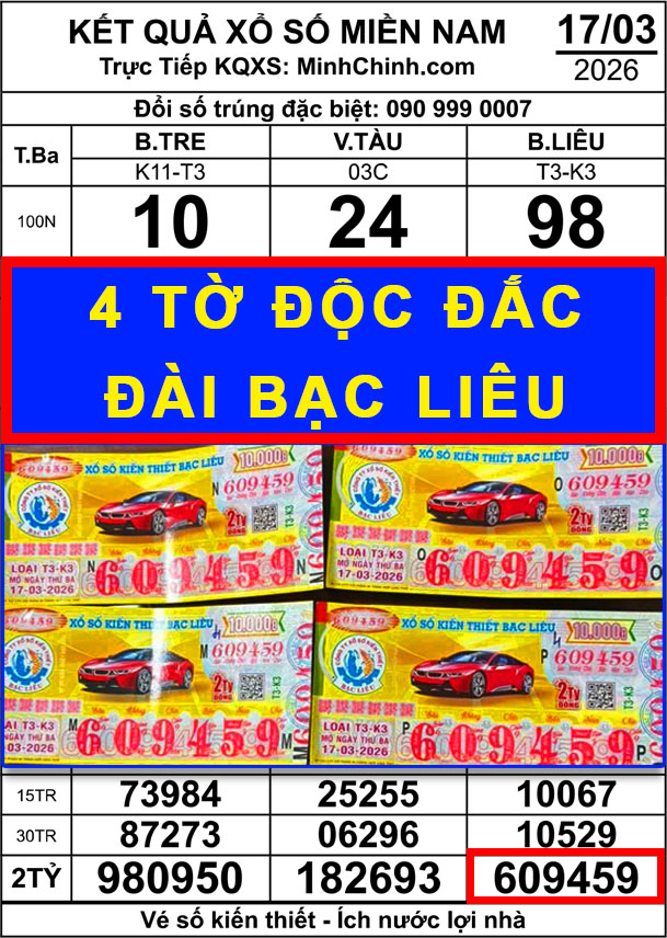 4 tờ vé trúng độc đắc của đài Bạc Liêu đã lộ diện khách hàng may mắn.