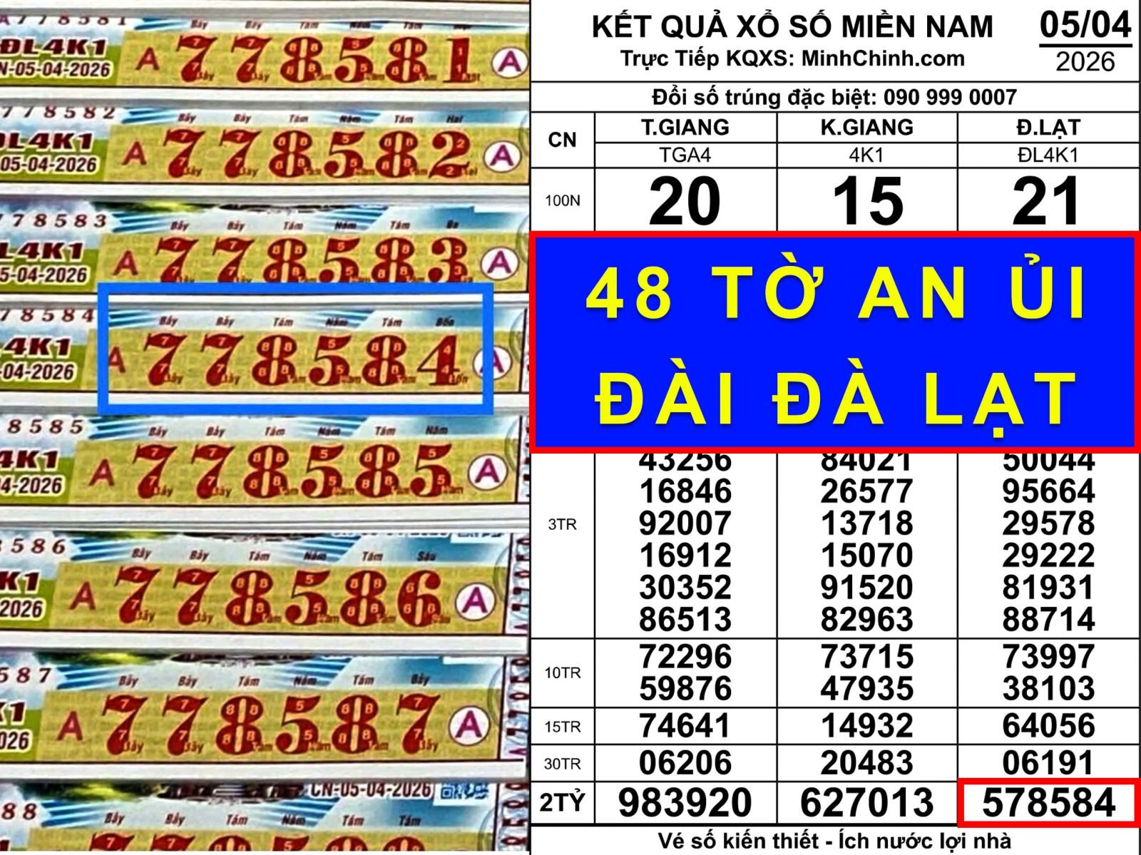 Đại lý vé số Minh Trí bán 48 tờ trúng an ủi theo kết quả xổ số miền Nam ngày 5 tháng 4