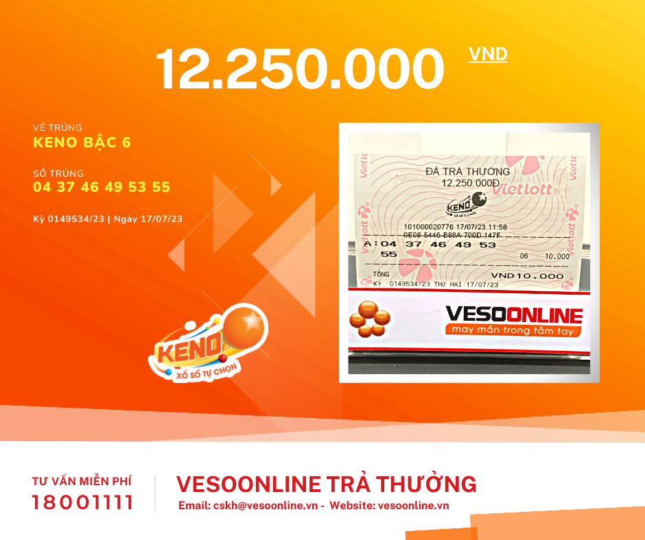 Cùng nhìn qua loạt vé trúng keno vừa qua tại VESOONLINE nhé