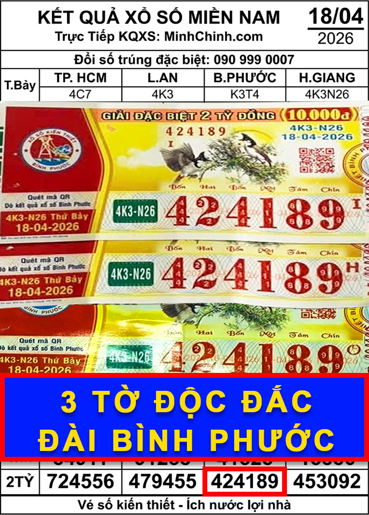 Việc liên tiếp ghi nhận khách trúng thưởng tại TPHCM, Vĩnh Long và Cà Mau khiến không khí xổ số miền Nam sáng 19/4 tiếp tục sôi động. Trong đó, Bình Phước đã lộ diện 3 vé độc đắc đầu tiên, còn Vĩnh Long ghi nhận khách trúng thưởng sớm đến đổi vé.