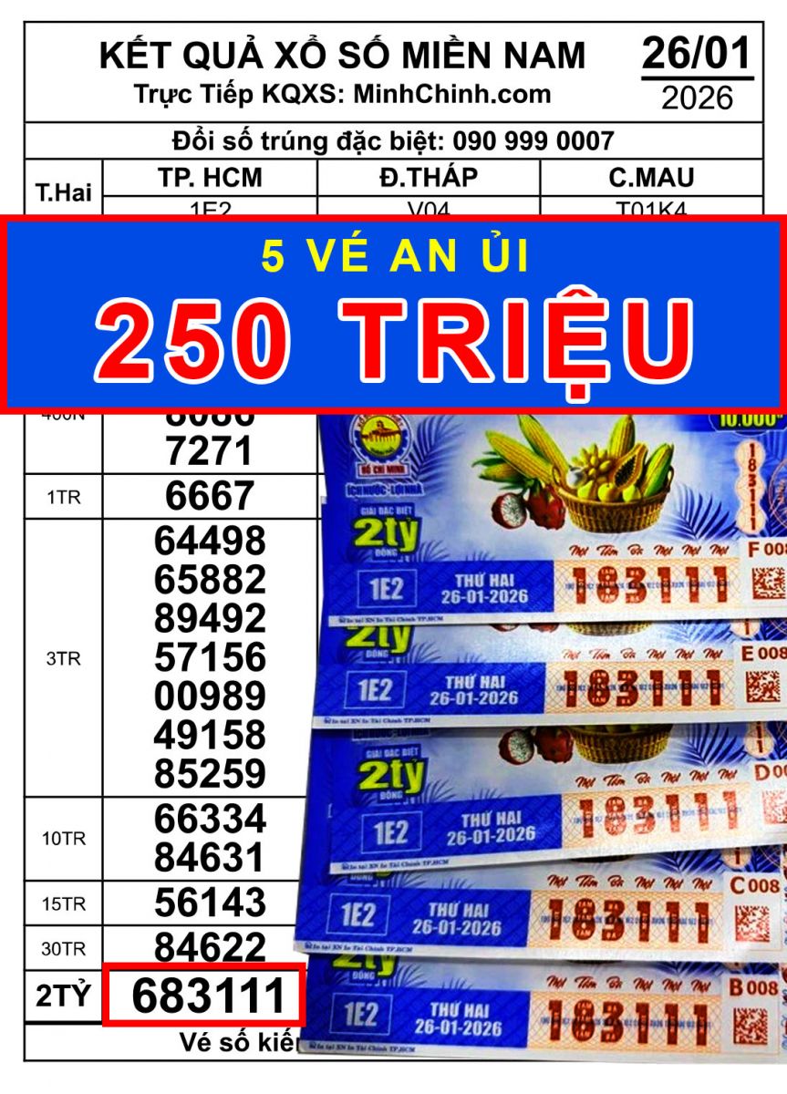 5 tờ trúng an ủi theo kết quả xổ số miền Nam ngày 26 tháng 1