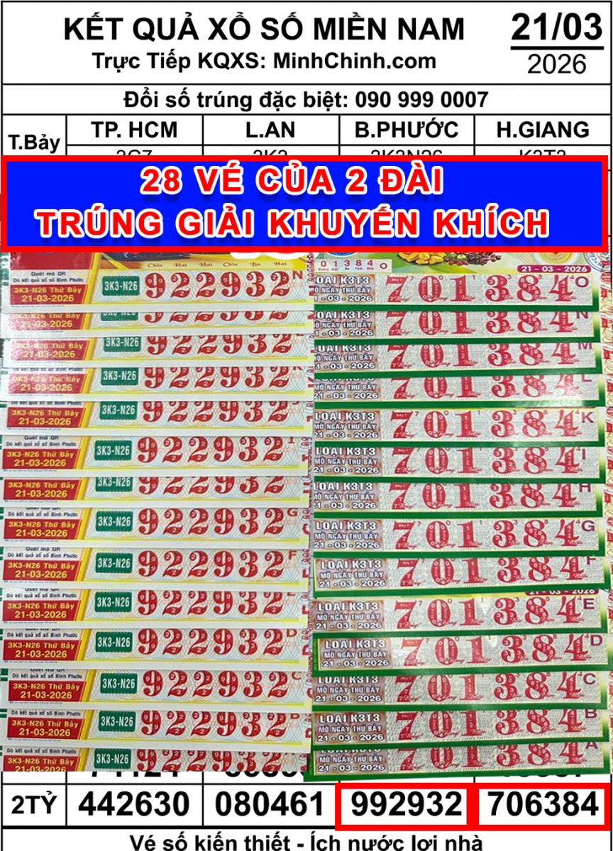 Trước đó, ngày 21-3, đại lý vé số Duy cho biết đã bán 28 vé thuộc hai đài Bình Phước và Hậu Giang cùng trúng giải khuyến khích, khiến đơn vị không khỏi tiếc nuối.