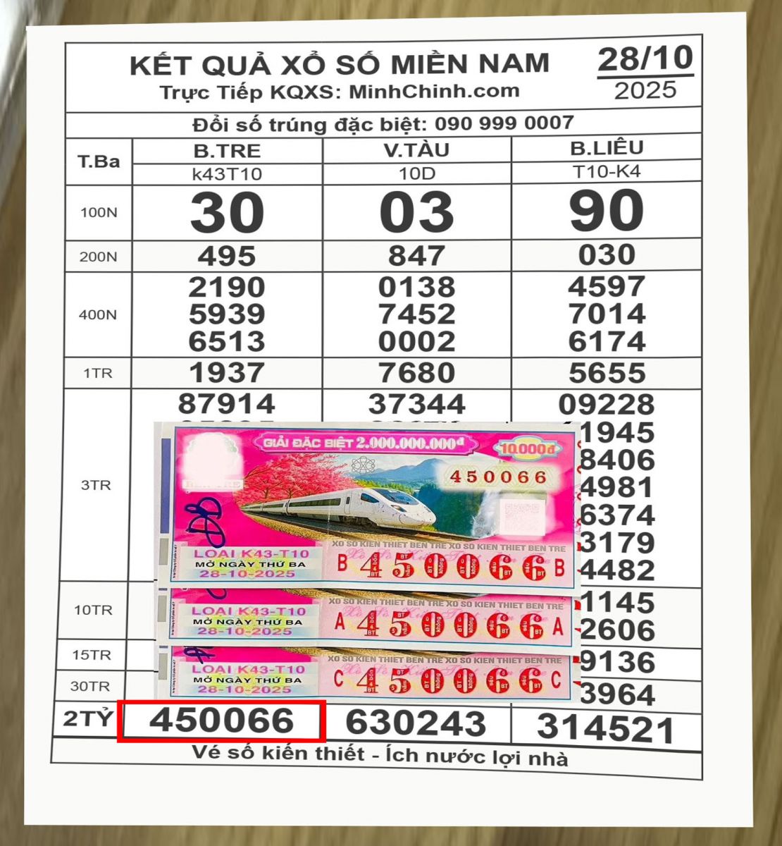 Ngày 28/10/2025, thị trường vé số miền Tây thêm phần rộn ràng khi đại lý Mai Trang (Vĩnh Long) xác nhận đã đổi thưởng cho khách hàng trúng 3 tờ vé số độc đắc của xổ số miền Nam – đài Bến Tre, tổng giá trị lên tới 6 tỉ đồng (chưa trừ thuế).