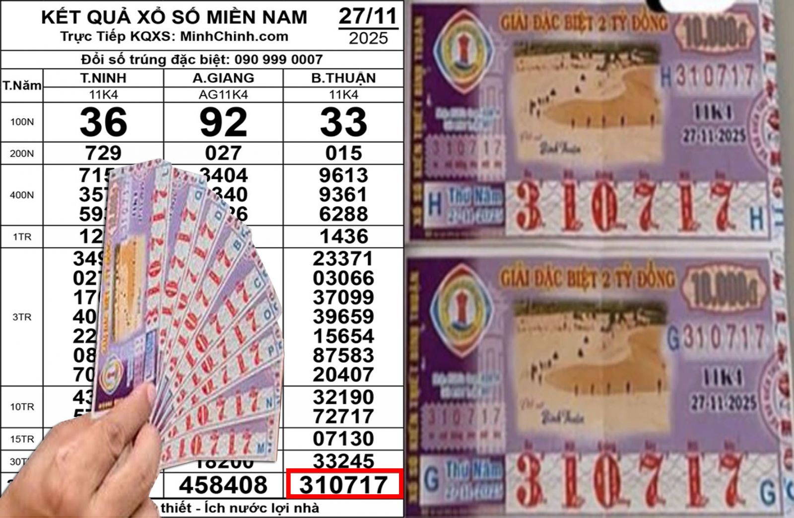 Theo chia sẻ của đại lý, tổng cộng 13 tờ vé số trúng độc đắc với dãy số 310717 thuộc đài Bình Thuận, mở thưởng ngày 27/11/2025, đã được đổi thưởng tại đây, với tổng trị giá 26 tỉ đồng (chưa trừ thuế). Trong số này, 22 tỉ đồng đã được anh Vinh đổi cho nhiều khách trước đó, còn 4 tỉ đồng được đổi vào ngày 30/11.