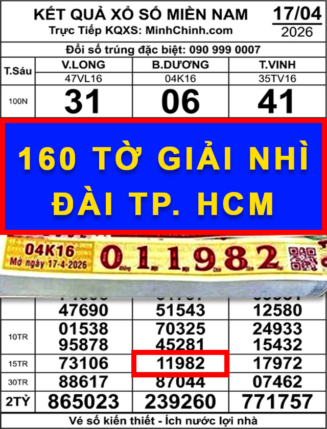 160 tờ trúng giải nhì theo kết quả xổ số miền Nam ngày