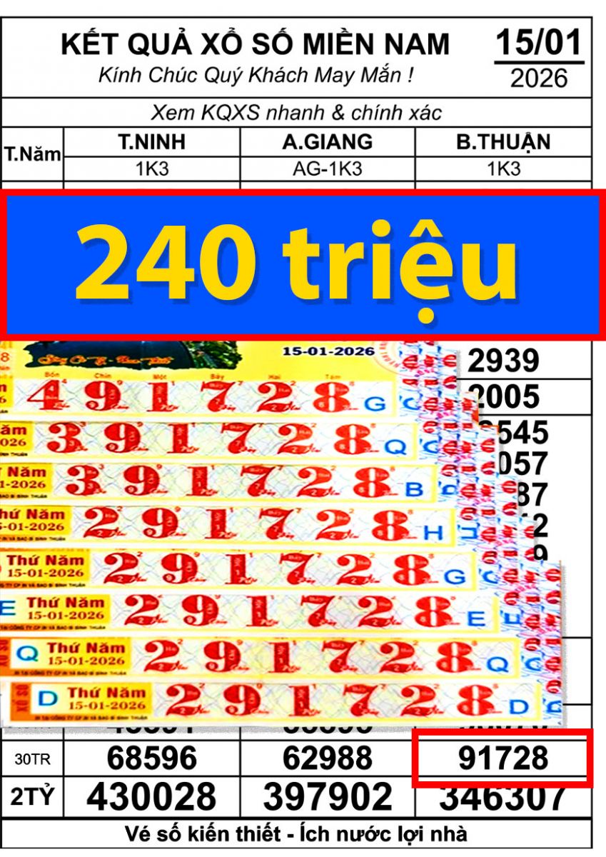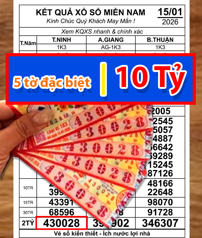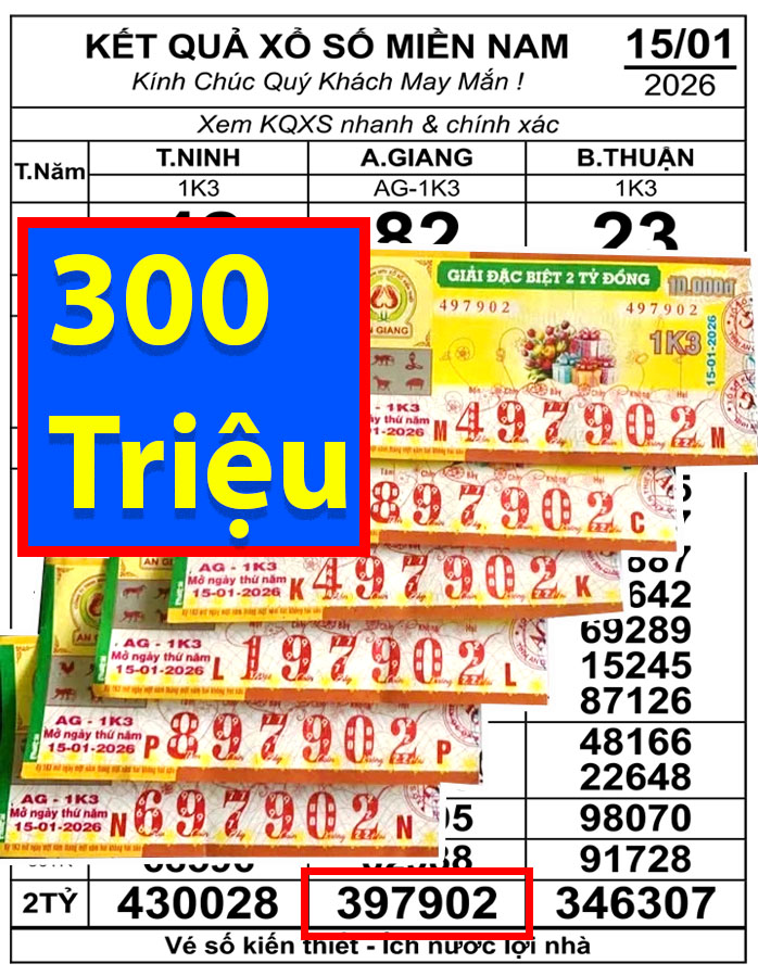 Chiều 16-1, thị trường xổ số miền Nam trở nên sôi động khi nhiều đại lý vé số tại Vĩnh Long, Đồng Tháp và Tây Ninh liên tiếp ghi nhận các trường hợp trúng thưởng, bao gồm giải độc đắc, giải an ủi và giải nhất. Thông tin được các đại lý cập nhật và chia sẻ công khai trên trang Facebook chính thức nhằm thông báo và tìm chủ nhân các vé trúng chưa đến đổi thưởng.