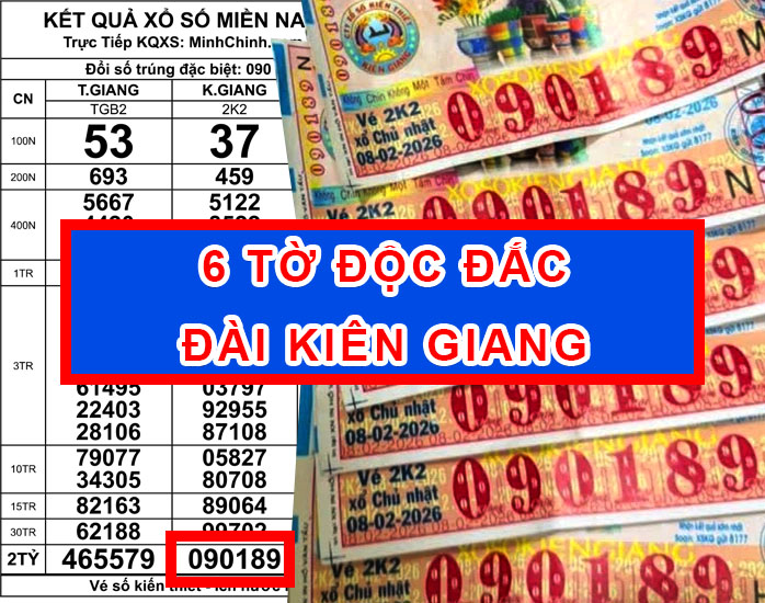 Bên cạnh đó, vé số Kiên Giang mở thưởng chiều 8-2 xác định dãy số trúng giải độc đắc là 090189, cũng được ghi nhận trúng tại tỉnh An Giang. Theo ghi nhận, 8 vé trúng độc đắc cùng 13 vé trúng giải an ủi đã được đổi thưởng tại đại lý vé số Hoàng, phường Long Xuyên, tỉnh An Giang. Hiện vẫn còn 6 vé trúng độc đắc Kiên Giang chưa lộ diện chủ nhân.