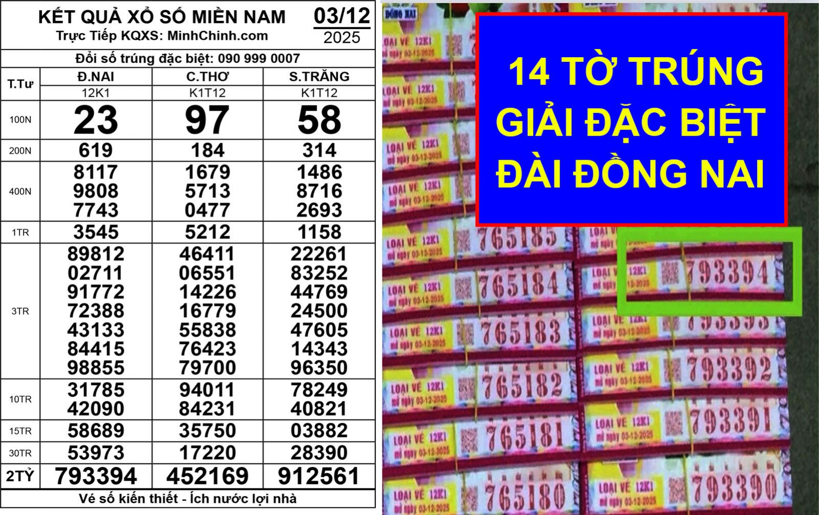 14 tờ trúng độc đắc xổ số Đồng Nai ngày 3 tháng 12 lộ diện