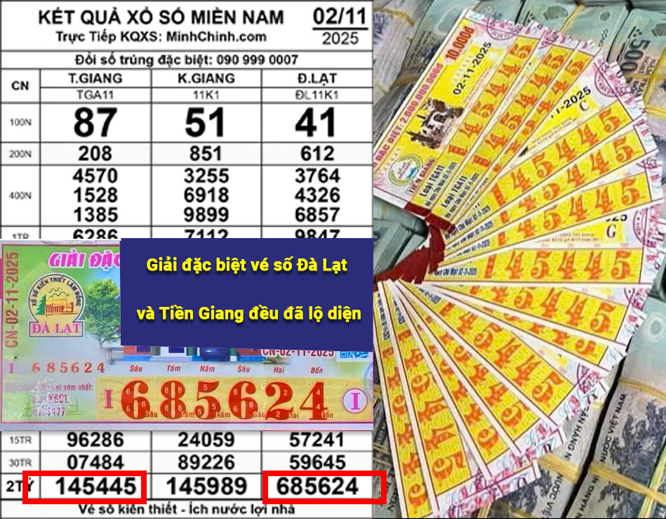 Giải đặc biệt vé số Đà Lạt và Tiền Giang đều đã lộ diện