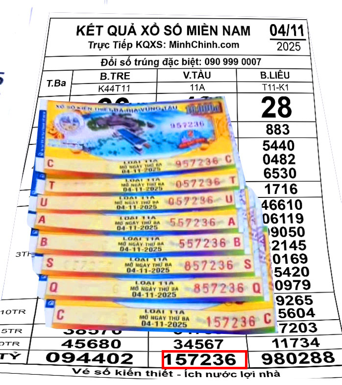 Cụ thể, tấm vé xổ số Vũng Tàu (do Công ty TNHH MTV Xổ số kiến thiết Bà Rịa – Vũng Tàu phát hành) với dãy số 157236 đã trúng giải đặc biệt. Người chơi may mắn đến từ huyện Đức Hòa, tỉnh Tây Ninh, và đã liên hệ đổi thưởng tại đại lý vé số Tấn Sỹ 78.