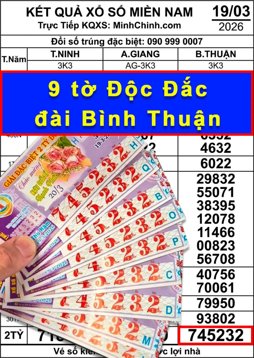 Vé số Bình Thuận (745232), mở thưởng ngày 19-3, được xác định trúng tại An Giang.