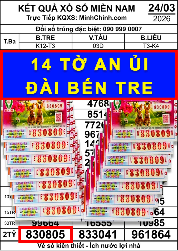 Ngoài ra, đại lý này cũng thực hiện đổi thưởng 14 vé khuyến khích đài Bến Tre trong cùng kỳ.