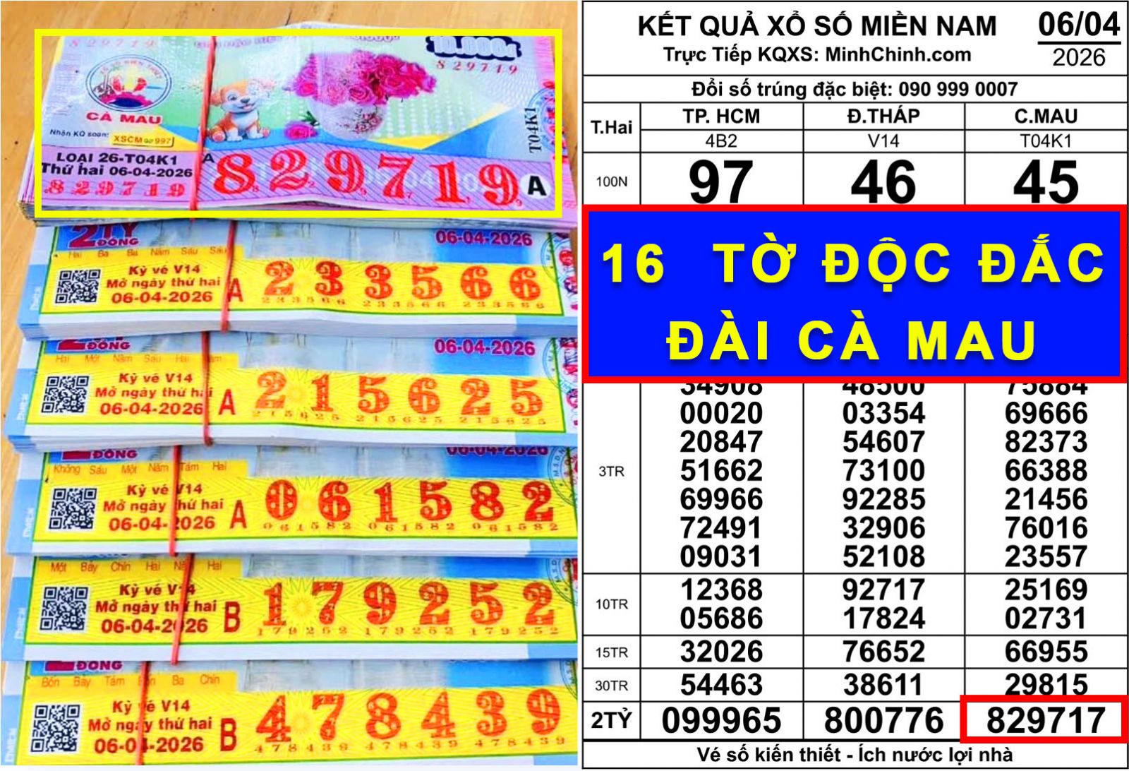 Chủ hệ thống vé số Long Dương Thuận Phát ở Tây Ninh thông báo bán trúng 16 tờ vé giải an ủi xổ số miền Nam ngày 6 tháng 4 đài Cà Mau cho khách